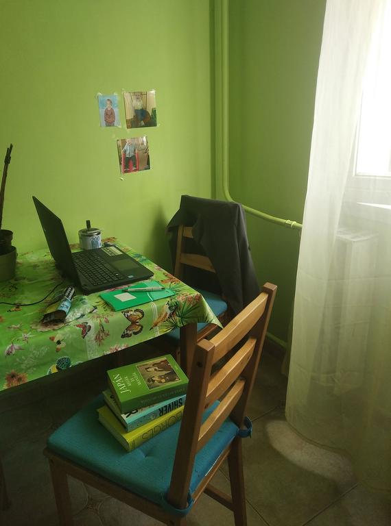 Sajnos dolgozószobám nincs, de a konyhában van egy sarkom, ahol dolgozhatok. Írás közben sokat dohányzom, ezért el kellett szeparálnom magamat a többi helyiségtől, lehetőleg egy ablak mellé, ráadásul a konyha viszonylag tágas, így még gondterhelt fel-alá sétálgatásra is van lehetőségem. A falon van pár fotó a kisfiamról, ezek régebben a szekrényem ajtaján lógtak, a könyvesboltban, ahol dolgoztam, de most már hivatalosan is az új munkahelyemet díszítik.